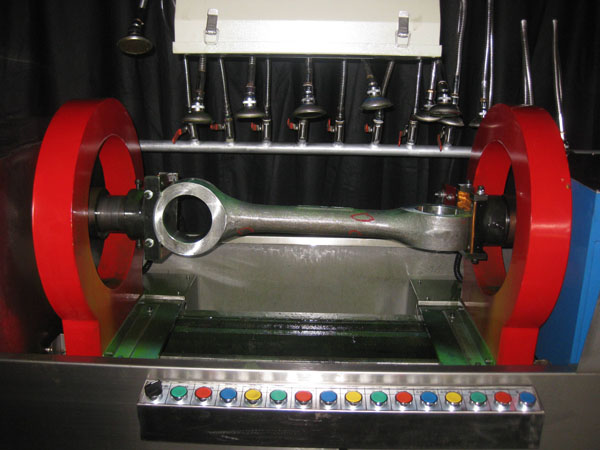 對于輪對壓裝、退卸過程中產生的凸起高點,通過手工磨修方式盡可能消除凸起高點,以減少軸端面打火現象的發生。磁粉探傷機探傷人…